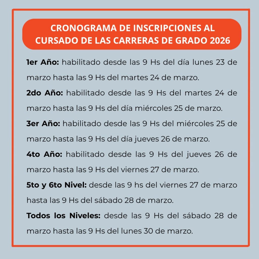 Calendario Académico 2026 de las carreras de grado de la Universidad Tecnológica Nacional - Facultad Regional de Tucumán.
