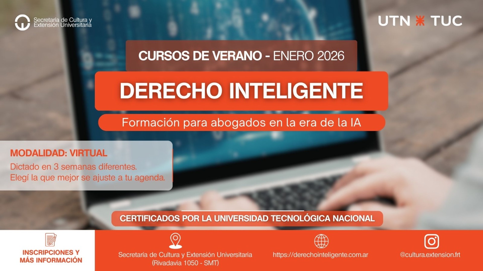 Cursos de Verano certificados por la UTN Tucumán La UTN TUC presenta una nueva propuesta formativa destinada a abogados y abogadas interesados en incorporar herramientas de Inteligencia